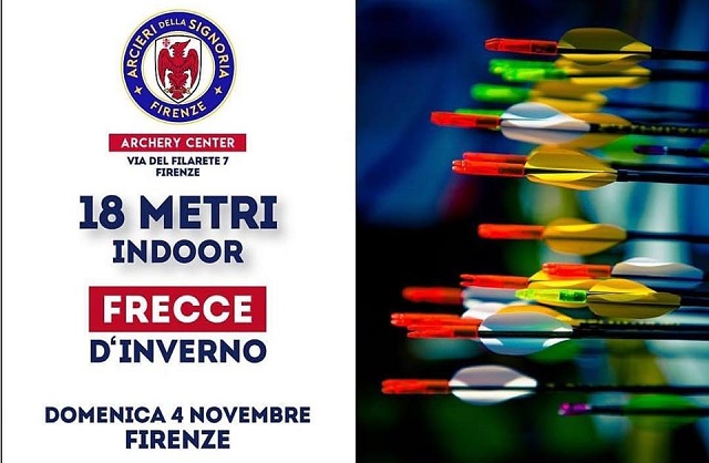 Domenica 4 novembre presso la palestra degli impianti sportivi del Comune di Firenze in Via del Filarete 7 a Firenze si svolgerà la gara di tiro con l’arco organizzata dalla Asd Arcieri della Signoria , la gara valevole per la qualificazione ai Campionati Italiani di Tiro con l’Arco Indoor vede la partecipazione dei migliori arcieri italiani che si scontreranno al meglio delle sessanta frecce sulla distanza di 18 metri, la competizione vedrà la partecipazione delle categoria arco olimpico, arco nudo e arco compound e delle classi: allievi, junior, senior e master sia femminili che maschili.