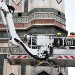 Stamani sono iniziati i lavori di monitoraggio delle superfici marmoree del complesso monumentale del Duomo di Firenze che andranno avanti tre settimane. I monitoraggi sono iniziati dal Campanile di Giotto e proseguiranno sulle superfici esterne del Duomo, della Cupola del Brunelleschi e del Battistero. I lavori sono eseguiti dal personale dell’Opera di Santa Maria del Fiore con l’ausilio di un’autogrù con un braccio di 103 metri che permette di raggiungere anche le zone più alte del Campanile di Giotto e della Cupola del Brunelleschi.