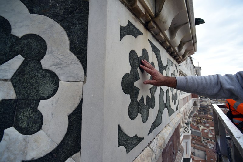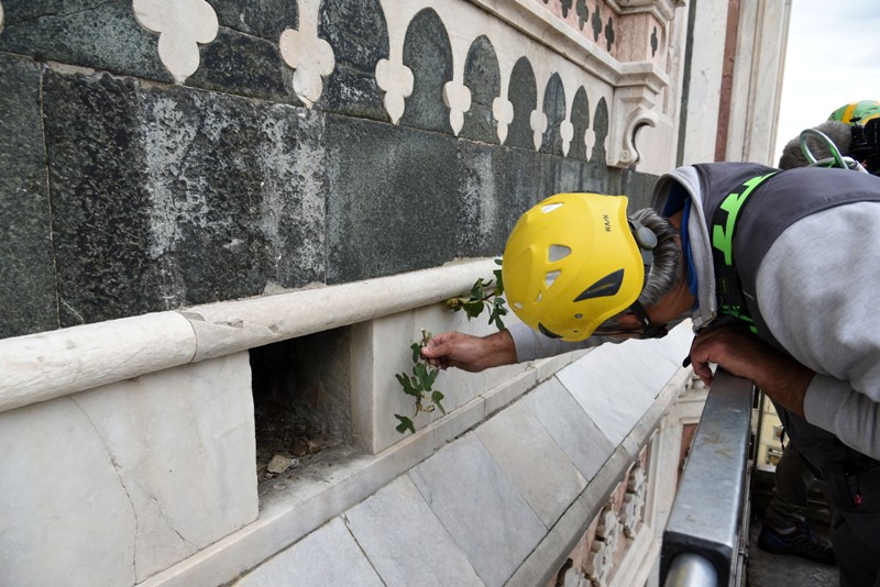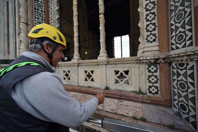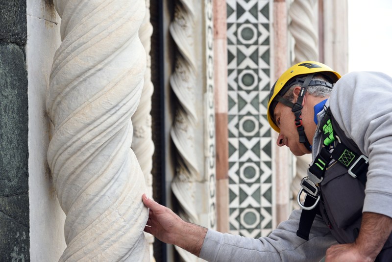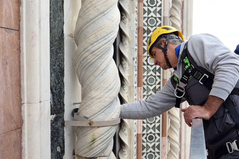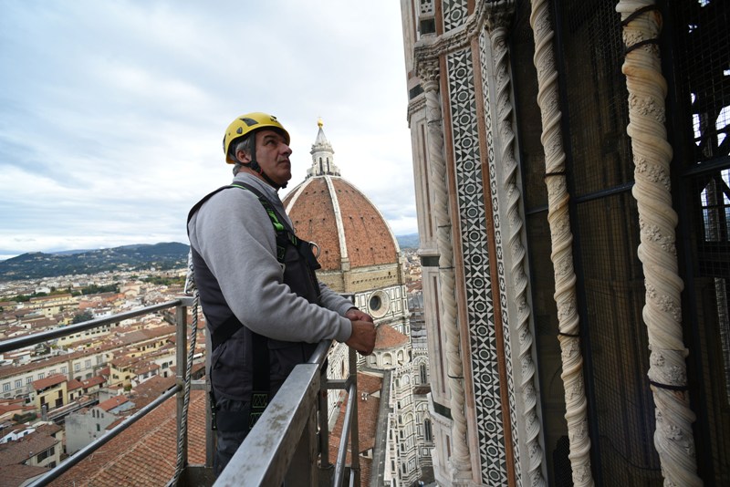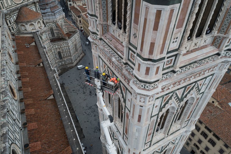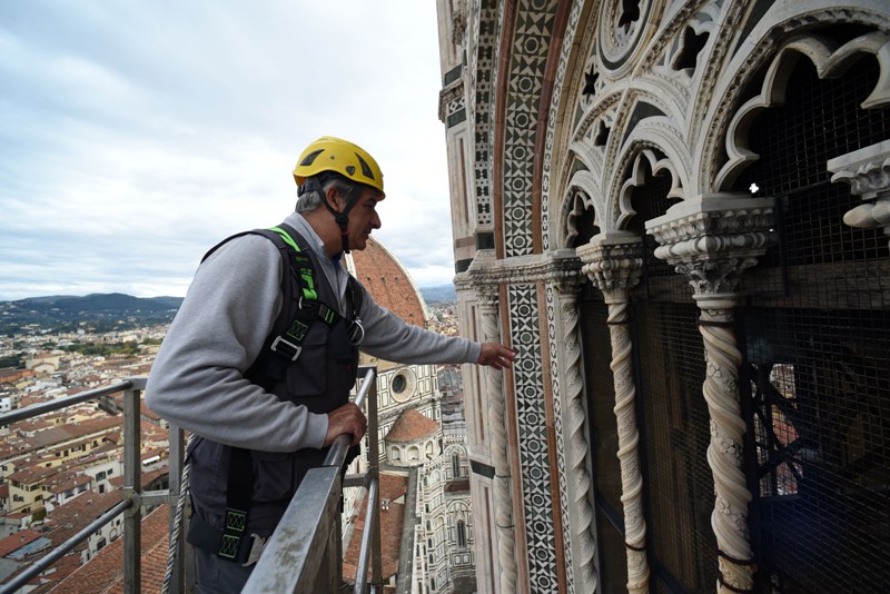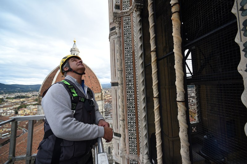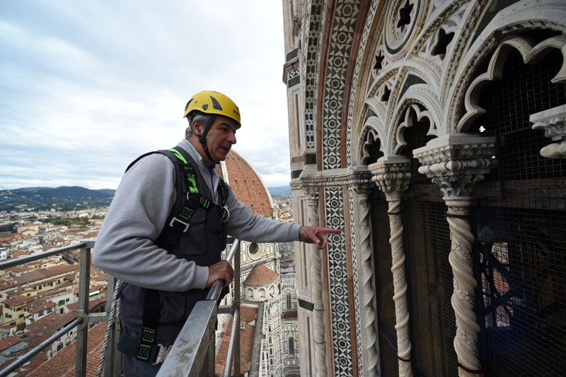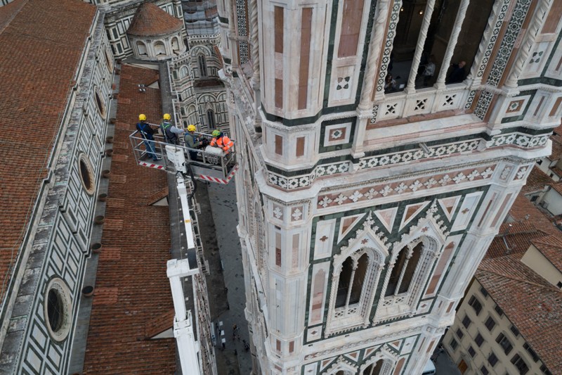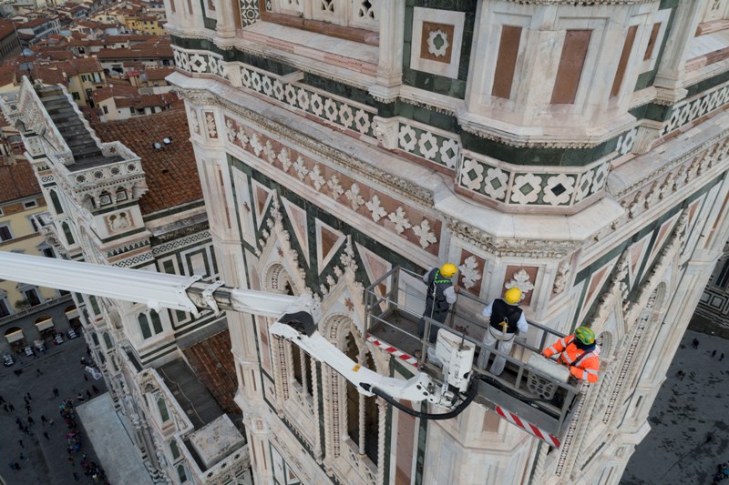 Si tratta di una delle attività di manutenzione che l’Opera di Santa Maria del Fiore fa regolarmente sui propri monumenti e che permette di controllare in dettaglio i circa 40 mila metri quadrati di superfici marmoree, di verificarne lo stato di conservazione, individuare i possibili degradi e programmare gli interventi di restauro. Dal 2015, il monitoraggio delle facciate esterne è effettuato semestralmente invece che annualmente, alla fine e all’inizio dell’inverno.