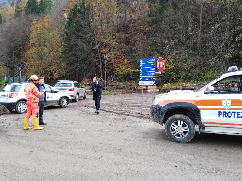 Nei giorni scorsi la colonna mobile si è occupata degli interventi assegnati dai vari COC, a Malga Ciapela, frazione da cui parte la funivia per i ghiacciai della Marmolada, nella Vallada Agordina, dove l'emergenza è stata il taglio e la rimozione degli alberi caduti e a Cencenighe, per il ripristino della viabilità e, anche qui, delle aree dove si trovano istituti scolastici. Oltre a queste attività, volontari e tecnici toscani, per conto del Centro operativo misto (COM) di Agordo (Belluno), hanno monitorato le zone di intervento assegnate per valutare natura e entità dei danni e priorità degli interventi.