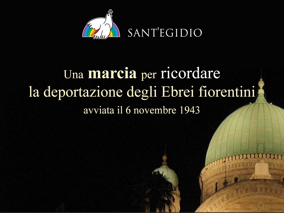 Firenze ricorda la deportazione degli Ebrei di Firenze, avviata il 6 novembre del 1943, attraverso un pellegrinaggio della memoria nelle strade del centro storico. Il corteo, convocato dalla Comunità di Sant'Egidio, quest'anno partirà da via del Corso, martedì 6 novembre, alle ore 17.30, con appuntamento al Canto di Croce Rossa (all'angolo di via del Corso con via dei Cerchi) e percorrerà le vie del centro fino alla sinagoga di via Farini. Qui i partecipanti al corteo saranno accolti dai responsabili della Comunità Ebraica per una cerimonia nel piazzale, durante la quale sarà proiettato il videomessaggio di Dana Szeflan Bell, sopravvissuta alla Shoah. Presente il Gonfalone del Comune di Firenze, interverranno anche i rappresentanti di Palazzo Vecchio.