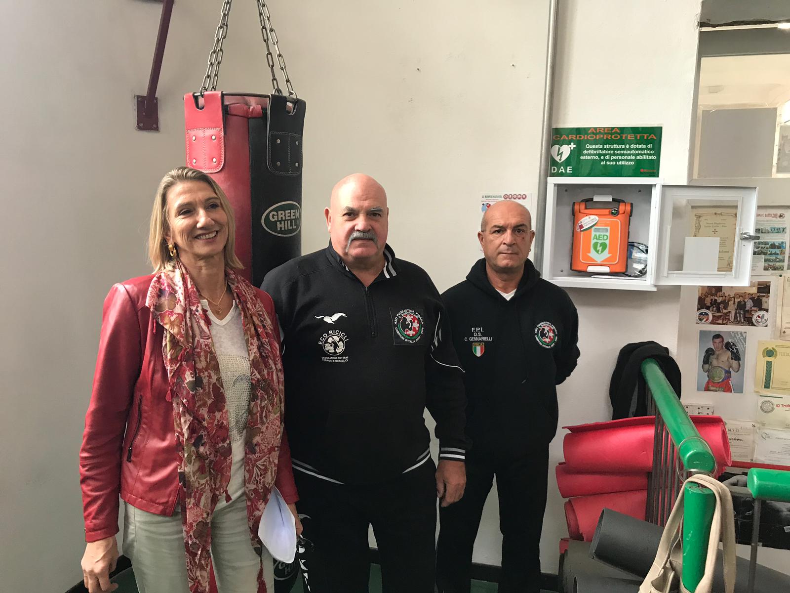 Un defibrillatore, che potrà essere usato in caso di emergenza cardiologica, è stato inaugurato ieri alla Pugilistica Bartolomei che si allena nella palestra dell’Istituto professionale Fascetti; è stato donato dall’amministrazione comunale, tramite Farmacie Comunali SPA, alla presenza dell’assessore alle politiche socioeducative e scolastiche Rosanna Cardia, del dottor Maurizio Cecchini, del maestro Marcello Bartolomei e dei suoi allievi.