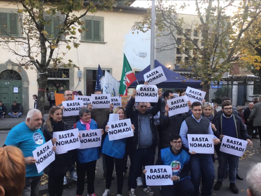 Questo pomeriggio si è tenuta in Piazza Dante a Campi Bisenzio la manifestazione #BastaNomadi promossa da Forza Italia, Lega e a Fratelli d’Italia, per protestare contro l'immobilismo della Giunta davanti all'invasione di nomadi in Via Einstein, Piazza Nazioni Uniti ed il parcheggio dell’Uci cinema.