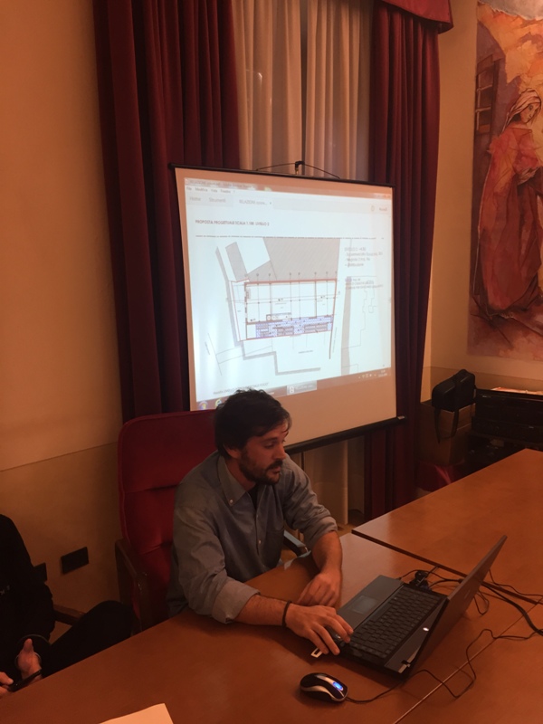 Il progetto di riqualificazione dell’ex Cinema – che dovrà passare da un adeguamento degli strumenti urbanistici attualmente in vigore - è stato illustrato questa mattina nella sala rossa del Municipio dal sindaco Alessio Falorni, dall’imprenditore Marco Tamberi (che si farà carico dell'intervento, NdR) e dai progettisti: architetto Paolo Gaeta e geometra Luigi Gaeta.