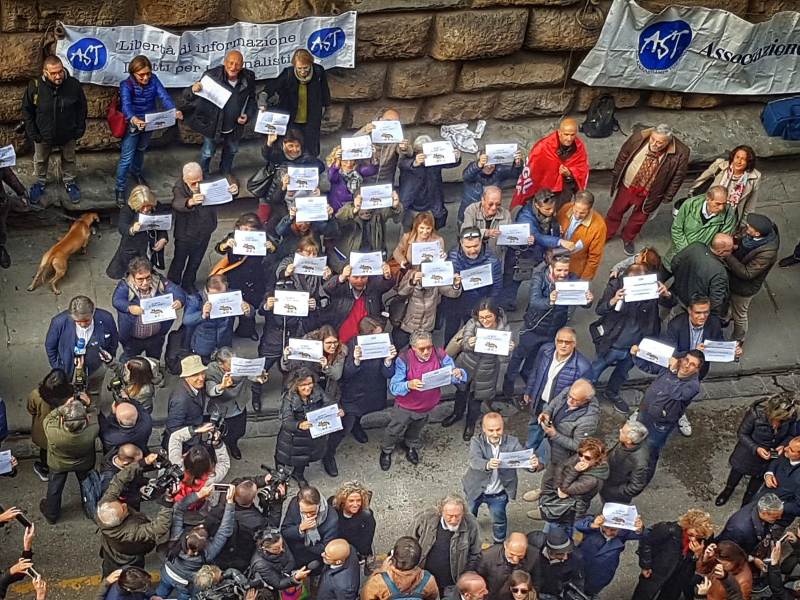 Eravamo 150 o forse più oggi a Firenze contro gli insulti a tutta la categoria da parte del vicepresidente del Consiglio Luigi Di Maio e dall'esponente del M5s Alessandro Di Battista, e per richiamare l'attenzione delle istituzioni sulla difesa del diritto all'informazione e sul rispetto dell'art. 21 della Costituzione. Oltre un centinaio i colleghi che aderito all’invito a manifestare rivolto dall’Associazione Stampa Toscana e dall’Ordine dei Giornalisti della Toscana, così come hanno fatto i giornalisti di tutta Italia nei capoluoghi di Regione.