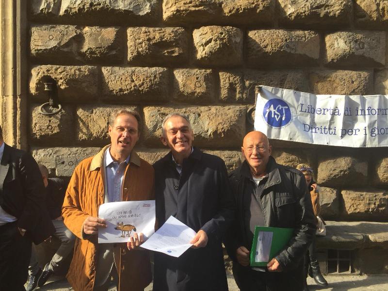 Quella di oggi è "una risposta seria e forte contro chi vuole credere di poter addomesticare l'informazione, cosa che non è possibile", ha affermato Sandro Bennucci, presidente dell'Associazione stampa toscana. "E' inaccettabile la caccia alle streghe, l'insulto pesante e volgare, la svalutazione di una professione che è un elemento di garanzia fondamentale per la costruzione della democrazia", ha dichiarato Carlo Bartoli, presidente dell'Ordine dei Giornalisti della Toscana che hanno consegnato al Prefetto di Firenze Laura Lega una lettera nella quale si legge tra l’altro che “gli attacchi ai giornalisti e al loro lavoro si distinguono per esplicita volgarità ma rappresentano una delle facce del processo di delegittimazione e di tentativo di addomesticare la stampa che i governi degli ultimi decenni hanno perseguito con una formidabile continuità: dai tentativi di legge-bavaglio alle mancate promesse contro le querele temerarie, dalla forte contrazione delle risorse a sostegno di un settore delicatissimo per la vita democratica del Paese. Ma stavolta si è abbondantemente passato il segno, fino a far temere una vera deriva democratica, che supera la censura e sfiora l'intimidazione con le minacce di nuove leggi per ‘regolare’ l'editoria”.