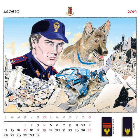 Non solo fumetti, infatti, nel calendario Polizia di Stato 2019. Ad ogni tavola, sono associati i nuovi segni distintivi di qualifica, che consentono di cristallizzare, anche graficamente, l’identità civile della Polizia di Stato.