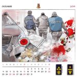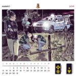 Quest’anno la Polizia di Stato ha scelto di raccontare la sua attività attraverso il linguaggio dell’arte grafica, con dodici inedite illustrazioni, realizzate da prestigiosi disegnatori di fumetto. Tra gli artisti figurano Bruno Brindisi, tra i più noti fumettisti della casa editrice Bonelli che, insieme a Roberto De Angelis e Luca Raimondo, firmano personaggi del tenore di Dylan Dog, Tex e Nathan Never; ma anche autori quali Raffaele della Monica, Daniele Bigliardo, Luigi Siniscalchi, Walter Venturi, Massimiliano Bertolini, Raul e Gianluca Cestaro, Stefano Casini fino al più giovane Jonathan Fara, disegnatore del made in Polizia di Stato “Commissario Mascherpa”. Il fumetto, quindi, quale mezzo di rappresentazione del presente e immaginazione del futuro.