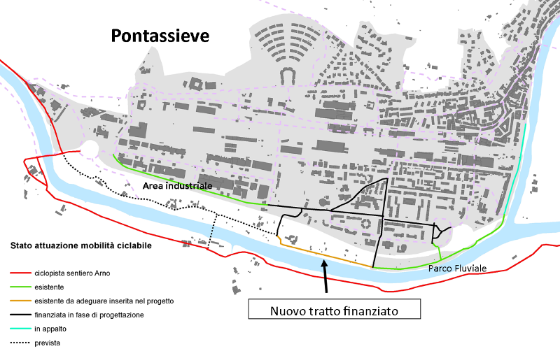 Pontassieve ha partecipato a questa opportunità - che porterà ad un sistema ciclabile che coinvolge i territorio regionali attraversati dal fiume Arno, con ricadute strategiche dal punto di vista ambientale, turistico e di mobilità sostenibile - presentando un progetto di riqualificazione della sponda dell’Arno in un tratto di circa 1km compreso tra il Parco Fluviale e via di Rosano.