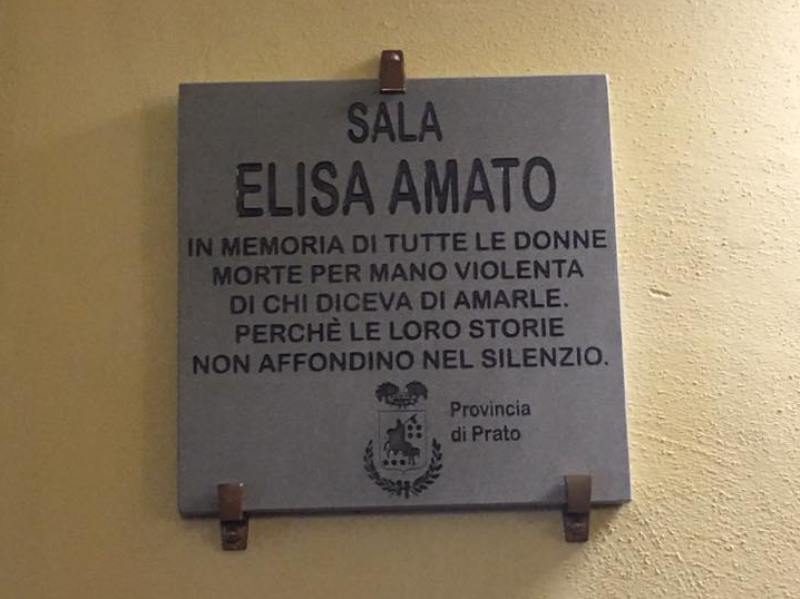 È stata intitolata a Elisa Amato la sala giunta del palazzo della Provincia di Prato: la trentenne di Prato uccisa la notte del 26 maggio dall'ex fidanzato di San Miniato Federico Zini è stata omaggiata nella cerimonia di quest'oggi, alla presenza del presidente Francesco Puggelli, del sindaco Matteo Biffoni, della madre e della sorella della ragazza. "In memoria di tutte le donne morte per mano violenta di chi diceva di amarle. Perché le loro storie - si legge sulla targa - non affondino nel silenzio". Un'intitolazione dovrebbe avvenire anche nella città della Rocca: la piazza che è stata luogo della tragedia finale, con il ritrovamento dei corpi senza vita dei due giovani, avrà anch'essa il nome di Elisa Amato.