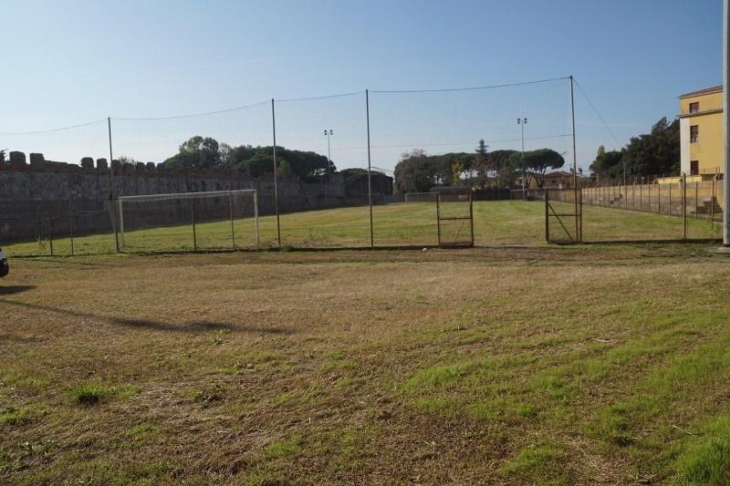 · Tutta la porzione in muratura di sostegno ai pali della recinzione perimetrale del terreno di gioco sui lati nord, est, sud deve essere coperta con terra o protetta con idoneo materiale antinfortunistico.