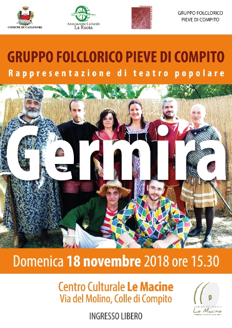 Domani (domenica 18 novembre) alle ore 15.30 al Centro Culturale Le Macine in via del Molino a Colle di Compito il Gruppo Folclorico di Pieve di Compito metterà in scena la rappresentazione di teatro popolare “Germira”.
