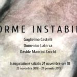In Forme Instabili i tre artisti attuano processi di decontestualizzazione delle ipotetiche realtà. Isolando elementi d’uso quotidiano o ricostruendo nuovi scenari attraverso dei frammenti del reale, plasmano ed infine trasformano i loro ambienti quotidiani. Si attuano processi di metamorfosi, come nella pratica pittorica di Castelli dove l'evoluzione in oggetto si concretizza dai paesaggi ai corpi, così come anche nella forma della tecnica pittorica. Laterza invece, nel suo lavoro anima gli oggetti lasciando che questi interagiscano e si contaminino tra loro. Infine, Mancini Zanchi rivisita alcuni archetipi dell’arte aprendone i confini verso il valore d’uso, in una dialettica fra la tradizione aulica della storia dell’arte e l’iconografia popolare.
