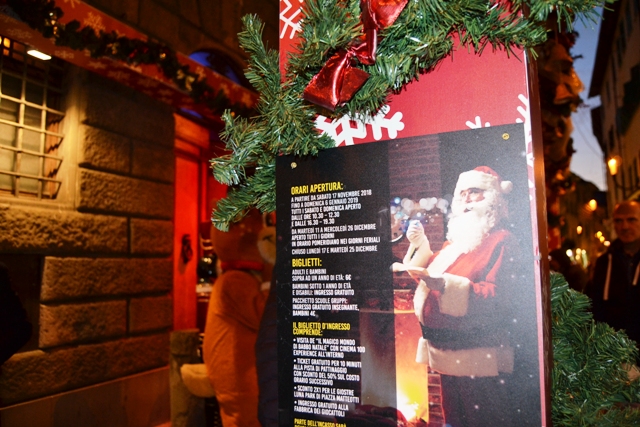 Dal 17 novembre tutti i sabato e domenica dalle 10.30 alle 12.30 e dalle 16.30 alle 19.30. Da martedì 11 a mercoledì 26 dicembre 2018, ‘Il magico Mondo di Babbo Natale’ resterà aperto tutti i giorni in orario pomeridiano nei giorni feriali, esclusi lunedì 17 e martedì 25 dicembre. Babbo Natale resterà in città fino al 6 gennaio 2019.