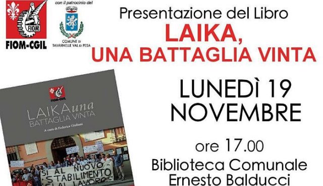 A presentarlo insieme all'autore ci saranno i Sindaci di Tavarnelle, David Baroncelli, e di San Casciano, Massimiliano Pescini, il Segretario Generale della Fiom Cgil di Firenze Daniele Calosi, Alessandro Corti, ex delegato Fiom in Laika, la Professoressa Franca Maria Alacevich (docente di Sociologia del Lavoro alla Facoltà di Scienze Politiche "Cesare Alfieri" di Firenze) e Stefano Fusi, ex sindaco di Tavarnelle, moderati da Massimo Galantini della Fiom Cgil Firenze.