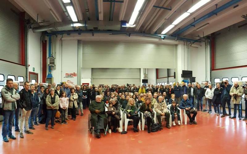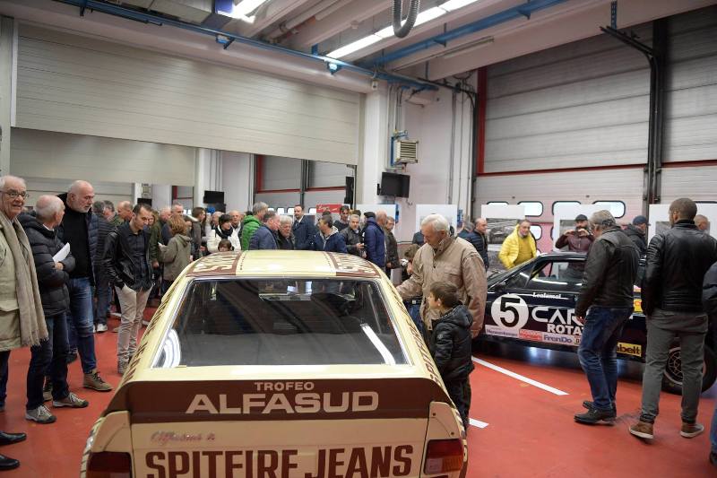 Grande l’emozione al momento in cui si è sollevato il divisorio di un box, fino a quel momento chiuso, mostrando due delle auto con le quale il campione mugellano aveva corso sulle piste di tutta Europa, insieme a tute, caschi e trofei e coppe vinte in un decennio di attività.