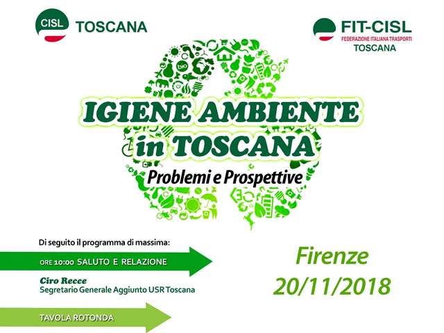Problemi e prospettive del ciclo dei rifiuti: il modello da adottare, l’organizzazione del servizio, l’assetto societario, la raccolta, lo smaltimento, il riciclo, i lavoratori coinvolti. È il grande tema, con tutte le sue declinazioni, al centro di un convegno, organizzato da Cisl Toscana e Fit-Cisl Toscana, in programma domani, martedì 20 Novembre, a Firenze, nei locali del Fuligno, in via Faenza 48 (ore 10-13).