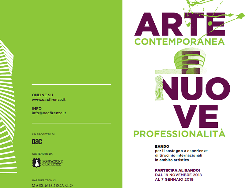 Il bando ‘Arte contemporanea e nuove professionalità’ è un’assoluta novità rispetto al diffuso modello dei bandi per residenze artistiche perché, attraverso la modalità dell’internship, offre delle opportunità professionali concrete. Potranno partecipare studenti di età non superiore a 27 anni, laureati entro e non oltre 6 mesi dalla scadenza del bando presso l’Accademia di Belle Arti di Firenze e Università degli Studi di Firenze nei dipartimenti DIDA – Dipartimento di Architettura e SAGAS – Dipartimento di Storia, Archeologia, Geografia, Arte, Spettacolo. Fondazione CR Firenze mette a disposizione per loro un contributo di 42.000 euro che serviranno per sostenere le spese di viaggio dei ragazzi, il loro alloggio, l’assicurazione per l’orario di lavoro previsto e la sua retribuzione mensile. Si potrà presentare domanda fino al 7 gennaio attraverso una procedura online sul sito www.oacfirenze.it.