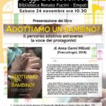 Questo il cuore del libro intitolato "Adottiamo un bambino? Il percorso adottivo attraverso la voce dei protagonisti" di Anna Genni Miliotti edito da Franco Angeli nel 2018, che sabato 24 novembre 2018 alle 10.30, verrà presentato al Cenacolo degli Agostiniani di Empoli, via dei Neri, 15, nell’ambito del “Caffè letterario della Fucini”.