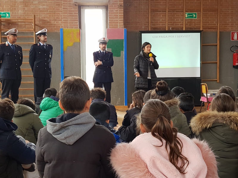 Cosa sono le tasse e a cosa servono? Che differenza c'è tra imposta e tassa? Cos'è un servizio pubblico e chi lo paga? A metterla così sembrano concetti difficili, eppure l'educazione alla legalità fiscale si può insegnare ed imparare fin da piccoli. Grazie al progetto “Investighiamo sul fisco” l'educazione alla fiscalità è arrivata anche sui banchi della scuola primaria “Alberto Manzi” di Morecci a Montemurlo, dove stamattina una sessantina di bambini delle classi quinte, riuniti nella palestra della scuola, hanno partecipato ad un' insolita lezione per imparare a scovare evasori fiscali e capire perché bisogna pagare le tasse. In cattedra sono saliti il pool anti- evasione costituito da alcuni agenti della polizia municipale e della ragioneria del Comune di Montemurlo, da Manuel Cianella dell'Agenzia delle Entrate di Prato e dall'ispettore Paolo Ghetti della Polizia Municipale di Prato, capofila del progetto regionale di cui fa parte anche il Comune di Montemurlo. Anche perché ai più piccoli bastano semplici esempi per capire concetti difficili.