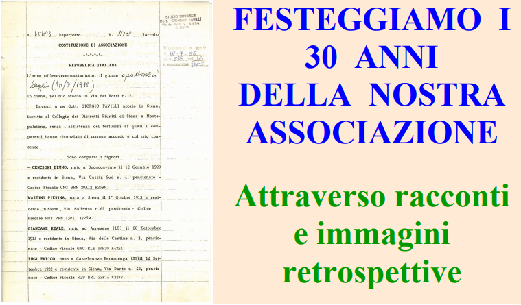 Programma: ore 10,30 – Saluto e introduzione del Presidente; ore 10,40 – Documentario sulla nascita e sui 30 anni di vita del “Centro”; ore 11,00 – Intervento dell’Assessore ai Servizi Sociali del Comune di Siena Dr.ssa Francesca Appolloni; ore 12,00 – Aperitivo.