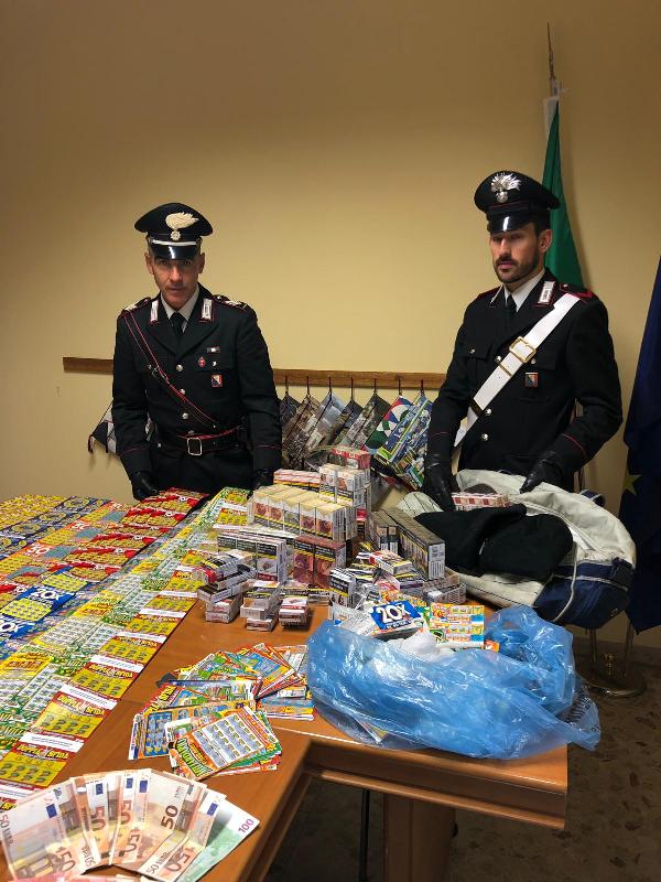 Mentre una pattuglia bloccava il conducente del mezzo, gli altri militari hanno rintracciato poco dopo uno dei tre che è stato quindi condotto presso l’abitazione di Lamporecchio per la perquisizione. Lì sono stati trovati gli effetti personali dei due complici fuggiti, quasi mille euro in contanti, numerosi pacchetti di sigarette e gratta e vinci già utilizzati (circa 500).