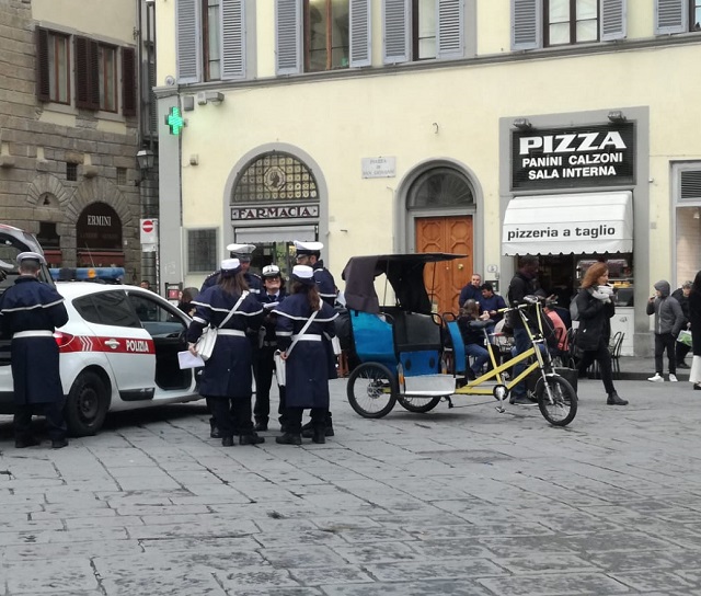 Un conducente multato per attività abusiva e denunciato per oltraggio a pubblico ufficiale. È questo il risultato dell’ultimi controllo effettuato dalla Polizia Municipale nei confronti dei risciò. Ieri poco dopo le 12.30 gli agenti a tempo determinato della Polizia Municipale insieme all’ufficiale delle Analisi e Strategie in servizio in centro hanno notato un risciò a pedali fermo nella piazza. Pensando che fosse in attesa di clienti, la pattuglia si è avvicinata per effettuare alcuni controlli ma il mezzo si è allontanato. Il conducente è stato intercettato poco lontano ma, alla richiesta degli agenti di fermarsi, ha cercato di fuggire senza successo perché l’ufficiale si è fisicamente posto davanti al mezzo.