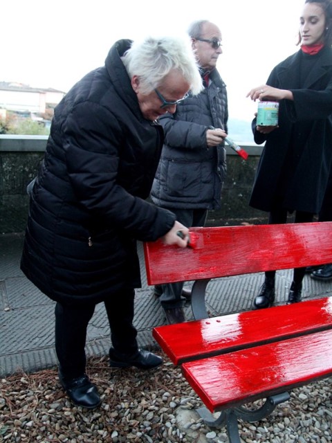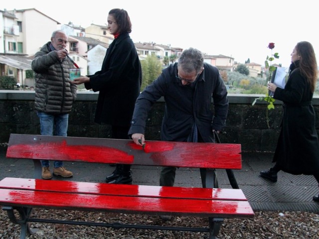 Un pennello intinto in un barattolo di vernice e la panchina si è 'macchiata' di rosso, con i tocchi, i colpi di mano di tante persone, gesti delicati e silenziosi, distribuiti nelle direzioni più diverse. In alto, in basso, in orizzontale, in verticale. Ognuno, portando mano e cuore a scorrere lentamente sui listoni di legno, ha impresso il proprio segno contro la violenza. Per dire no al femminicidio, a chiunque si renda colpevole di sopraffazioni, annulli e mortifichi identità e dignità delle donne. Sono state numerose le cittadine e i cittadini di San Casciano di ogni età che, in occasione della giornata mondiale contro la violenza sulle donne, hanno aderito all'iniziativa organizzata dal Comune di San Casciano e dalle organizzazioni sindacali Cgil, Cisl e Uil che ha previsto un’opera di tinteggiatura collettiva di una seduta pubblica in piazza della Repubblica, a San Casciano.