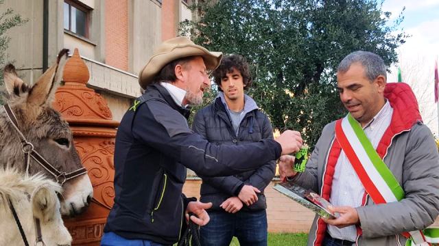 Questa mattina il vicesindaco Lorenzo Nesi e l'assessore Simone Londi hanno accolto a Montelupo Fiorentino Diego D'Incau che, a piedi insieme alle asine Puina e Rosina, e l'artista Maristella, sta facendo il #ViaggiodellaSalute dal Vajont fino a Roma, dedicato alla staffetta partigiana #TinaMerlin