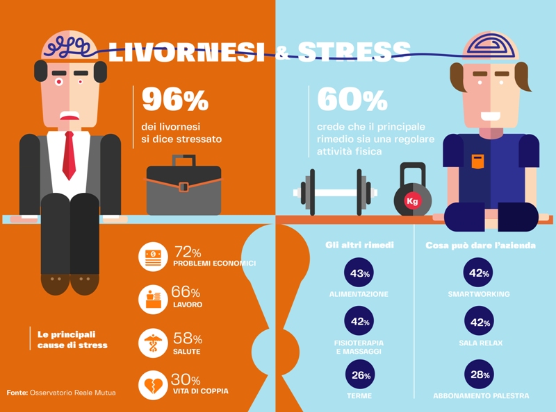 Il 96% dei livornesi dichiara di essere troppo stressato, sottoposto a un carico di pressioni, incombenze e preoccupazioni che riduce la qualità della vita e arriva molte volte a incidere negativamente sulla salute, il lavoro e le relazioni sociali.
