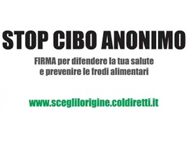 Coldiretti: occasione per sottoscrivere la petizione europea Stop cibo anonimo