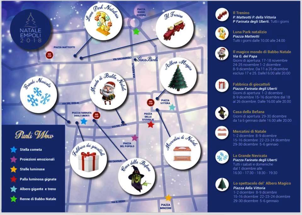 Si preannuncia il più bel Natale di sempre a Empoli, questa è l’ambizione. Sicuramente sarà quello che vede lo sforzo maggiore da parte dell’amministrazione comunale e dei commercianti del centro storico, in particolare di coloro che aderiscono e sono impegnati nella omonima associazione. Natale 2018 vuol essere un mese e mezzo di eventi e di attrazioni per far vivere a pieno la magia del Natale e per richiamare a Empoli migliaia di persone affascinate da tutto quello che sarà offerto nelle piazze e nelle vie del centro cittadino.