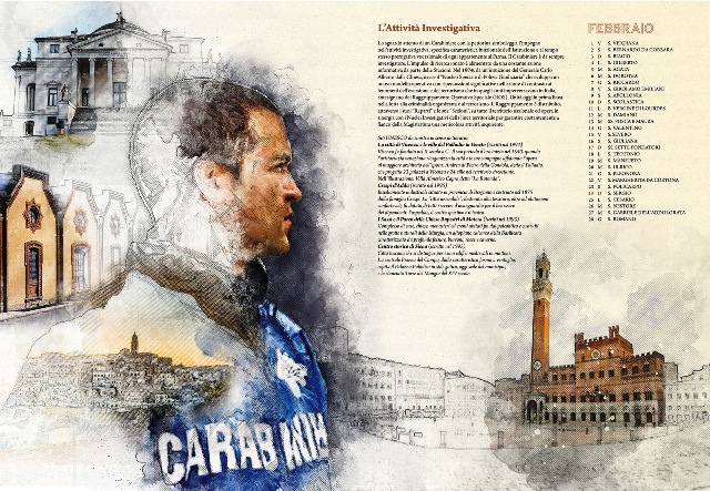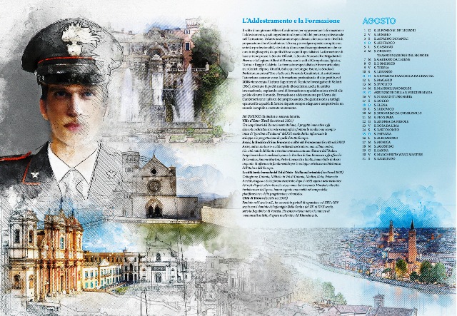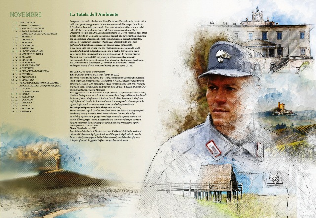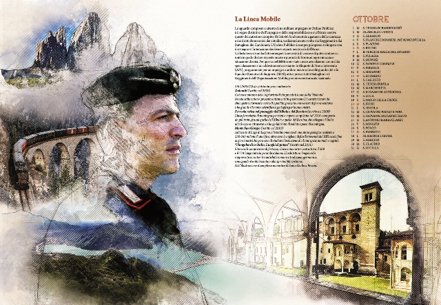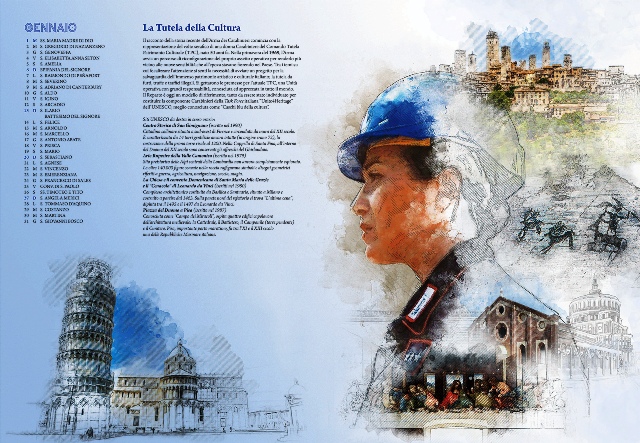 Le pagine del Calendario presentano una carrellata dei siti italiani tutelati dall’Unesco. Sono stati “inseriti tutti con immagini o menzioni tali da fornire una visione complessiva della varietà di scenari della nostra penisola” – ha dichiarato nel suo intervento il Comande Generale Giovanni Nistri. In parallelo è riportato in breve il percorso evolutivo dei Carabinieri negli ultimi decenni, a partire dal Comando Tutela Patrimonio Culturale avviato nel 1969, che di recente ha fornito i primi “caschi blu della cultura” all’Unesco. Accompagnano le immagini dei luoghi simbolo della Nazione le altre articolazioni dell’Arma, attraverso la rappresentazione di uniformi e “principalmente di volti. Il volto” - ha proseguito il generale Nistri - “è lo specchio dell’anima, come i luoghi sono lo specchio di un Paese. E quelli presenti nelle tavole… stanno ben attenti a non invaderle. Si fondono nell’insieme…perché noi siamo e ci sentiamo parte integrante del paesaggio italiano, inteso come identità nazionale”.