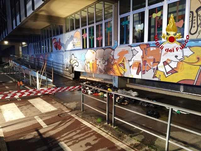 Il personale giunto sul posto con 3 automezzi e 12 unità, ha estinto l’incendio che si è sviluppano nell'intercapedine sottostante la scalinata d’ingresso dell’istituto, dove trovano riparo persone senza fissa dimora. Non risultano persone coinvolte.