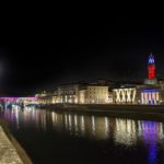 Dopo i recenti interventi di recupero e restauro, un’illuminazione scenografica valorizzerà il palazzo della Camera di Commercio, grazie a fasci di luce che daranno risalto tanto agli elementi architettonici su Lungarno Diaz quanto le facciate su Piazza Mentana e Piazza dei Giudici.