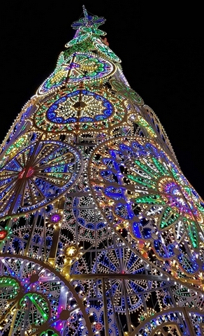 A seguire verrà accesa una delle nuove installazioni di F-light: in Piazza Santa Maria Novella, di fronte alla meravigliosa facciata della basilica, sarà inaugurato un grande albero di luminarie: un cono di 18 metri composto da rosoni luminosi, ispirato ai motivi architettonici e agli intarsi nel marmo della facciata della basilica, ma anche una reinterpretazione moderna del classico abete, simbolo per eccellenza del Natale. L’installazione è resa possibile grazie alle più prestigiose strutture alberghiere della piazza: Hotel Roma, WTB Hotels, J.K. Place e Grand Hotel Minerva.