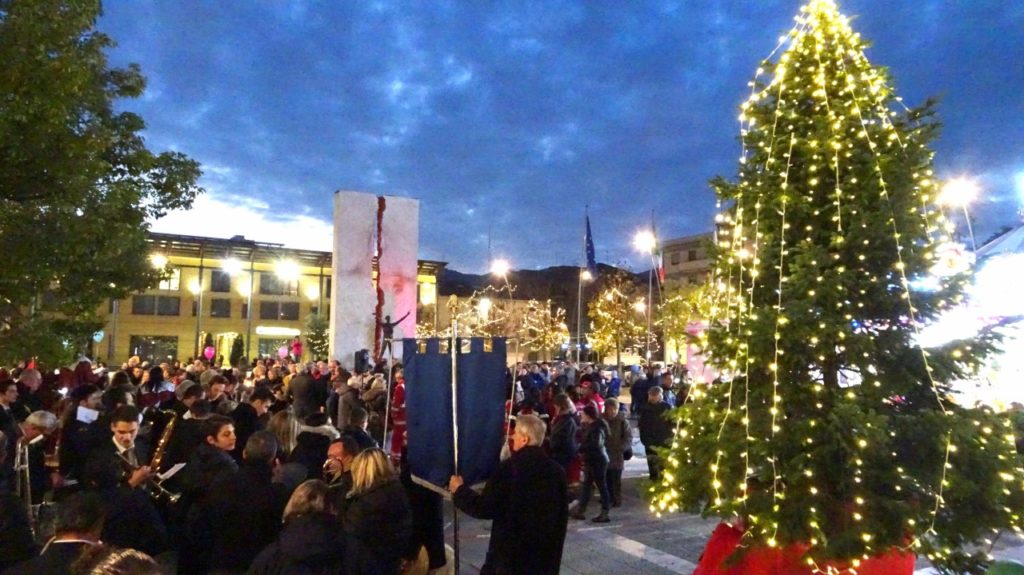 Dopo l’inaugurazione della mostra, alle 17 in piazza Risorgimento il sindaco Marco Mazzanti ha acceso, come da tradizione, le luminarie cittadine e le luci del grande albero di Natale di piazza Risorgimento, realizzate quest'anno dall’Amministrazione comunale. Questo momento è stato coronato dalla musica della Filarmonica Giuseppe Verdi e dalle voci del Coro Pistoia Gospel Singers diretto da Silvia Benesperi. Ad ogni bambini presente è stato inoltre regalato un palloncino colorato.