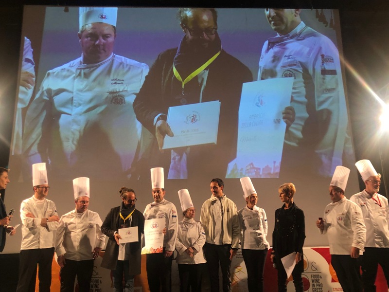 Unione Regionale Cuochi ha premiato: per la comunicazione lo chef Franco Mazzei, per la tradizione la pasticceria Fratelli Bonci di Montevarchi (Arezzo), per l’innovazione la chef Maria Luisa Lovari e il Dipartimento Solidarietà Emergenze dell’ Unione Regionale Cuochi Toscani, per la sostenibilità. Il premio “Eccellenza” di Food & Wine in Progress è stato consegnato a Giorgio Pinchiorri, icona planetaria del settore Food & Wine.