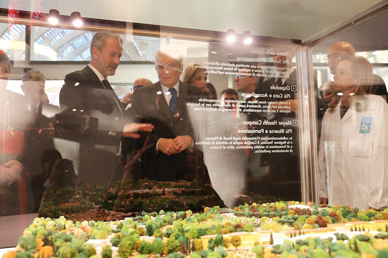 È un’accoglienza davvero calorosa quella che i bambini e gli operatori del Meyer hanno riservato al Presidente della Repubblica Sergio Mattarella, che questo pomeriggio si è recato all’Ospedale pediatrico fiorentino. Il Presidente ha visitato alcuni reparti e anche i laboratori dove si svolge la ricerca. Ai piccoli pazienti e ai loro familiari ha dispensato sorrisi e parole affettuose, intrattenendosi a parlare anche con i medici e gli infermieri dell’Ospedale. Al termine della visita, al momento del saluto finale in programma nella Hall Serra alla presenza dei rappresentanti delle istituzioni locali e del Direttore Generale del Meyer Alberto Zanobini, il Presidente ha tenuto un breve discorso nel corso del quale ha definito il Meyer un’eccellenza, un punto di riferimento nazionale e internazionale che mette al centro i bambini. Nel corso di questo momento conclusivo della visita presidenziale, è stato inaugurato il plastico che rappresenta Meyerpiù, il progetto triennale di sviluppo dell’Ospedale pediatrico.