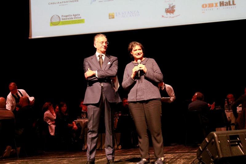 Un momento particolare della serata è stata la consegna di un riconoscimento dell’artista artigiano Paolo Penko a Carlo Conti, che è diventato “padrino” dell’Istituto degli Innocenti.