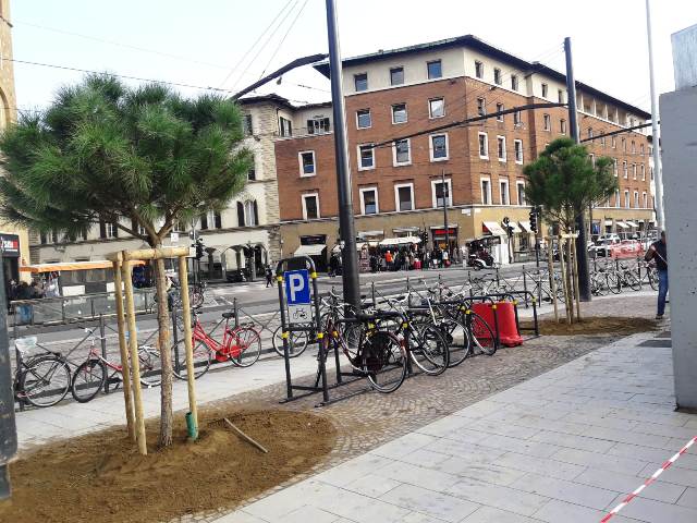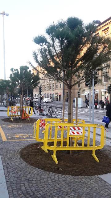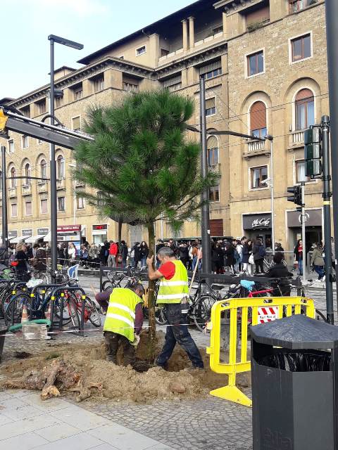 Tornano i pini alla stazione di Santa Maria Novella: dopo i dieci pini messi a dimora l'autunno scorso, altri dieci sono stati piantati ieri, completando così il rimboschimento dell'area verde intorno alla grande opera di Michelucci. Si tratta infatti dell'ultimo atto di una serie di lavori iniziati nell'estate 2017 col taglio dei vecchi pini, da tempo malati e a rischio caduta, e con la conseguente operazione di sostituzione con nuove piante. "Come promesso - sottolinea l'assessore all'ambiente Alessia Bettini - dopo ogni abbattimento interveniamo sempre con un nuove piante in numero uguale o superiore. Nel caso della stazione i vecchi pini avevano ormai completato il loro ciclo vitale ed è stato necessario, anche se doloroso, abbatterli per garantire l'incolumità delle persone. Ma fin da subito avevamo annunciato che ne avremmo piantati altrettanti, della stessa specie, così come prescritto dalla sovrintendenza: dieci lo scorso autunno e dieci adesso, con la pavimentazione della nuova tramvia completata". I pini sono stati messi a dimora ieri, sul lato di via Valfonda, e sono alti circa quattro metri. "L'area della stazione - continua Bettini - sta diventando più bella e curata di prima: oltre ai nuovi alberi anche il prato dal lato della Basilica è stato completamente rifatto grazie a una sponsorizzazione privata e aggiunge decoro e ordine a tutta la zona".