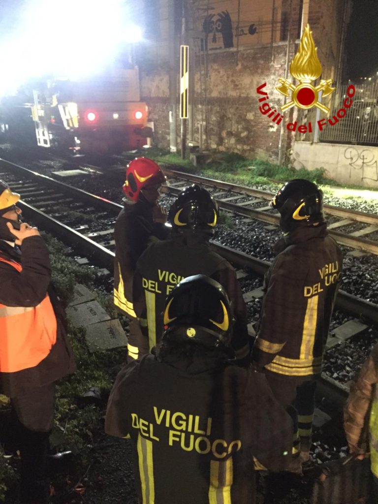 Un treno merci, che transitava tra le stazioni di Campo Marte e Statuto a Firenze, ha urtato una piattaforma su rotaia sulla quale si trovavano tre operai che sono caduti a terra, sul massicciato. I vigili del fuoco del comando di Firenze, della sede centrale e del distaccamento di Fi-Ovest, sono intervenuti sul sedime ferroviario all'interno della galleria “Pellegrino” che si trova tra la stazione di Campo di Marte e lo Statuto per l'incidente ferroviario avvenuto intorno alla mezzanotte.