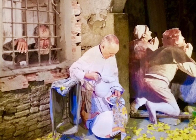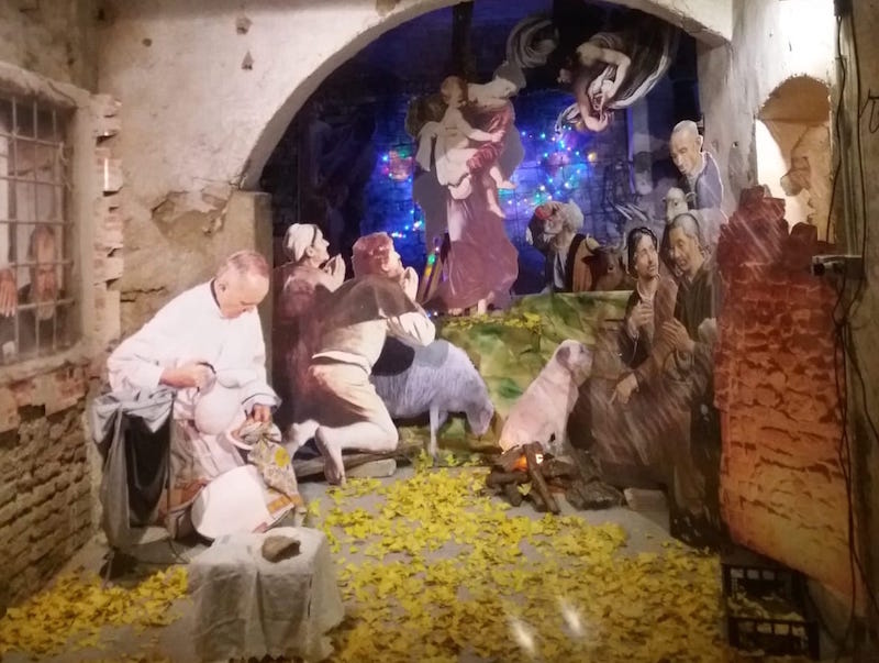 Un presepe particolare prende forma a Castelfiorentino. Per la precisione si trova in via Forese Adimari al numero 11, è stato creato da Bruna Scali e Silvano Salvadori, che già in passato hanno mostrato la loro 'arte' e maestria nella natività. Di cosa tratta l'edizione 2018? C'è un misto di storia e di attualità, con un omaggio ai grandi della pittura. Spiccano Ghirlandaio e Caravaggio, in più c'è Papa Francesco, misericordioso verso i pellegrini.