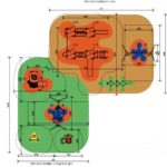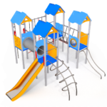 L’area ludica è una sola, ma sarà divisa in una parte con giochi per bambini da 1 a 3 anni: con altalena con cesto; torretta con scivolo; gioco a molla e pannello gioco-alfabeto; nell’altra parte giochi adatti per bimbi da 3 a 11 anni: gioco composito strutturato, con torri, scivolo, ponte con camminamento in rete; salita, pertica, tunnel, scala, rete di arrampicata.,