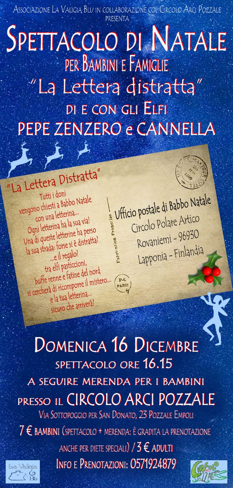 Il Circolo Arci Pozzale insieme all’Associazione Valigia Blu, domenica 16 dicembre presenta ‘Spettacolo di Natale’, per i bambini e le famiglie: “La Lettera distratta”, di e con gli elfi Pepe Zenzero e Cannella.