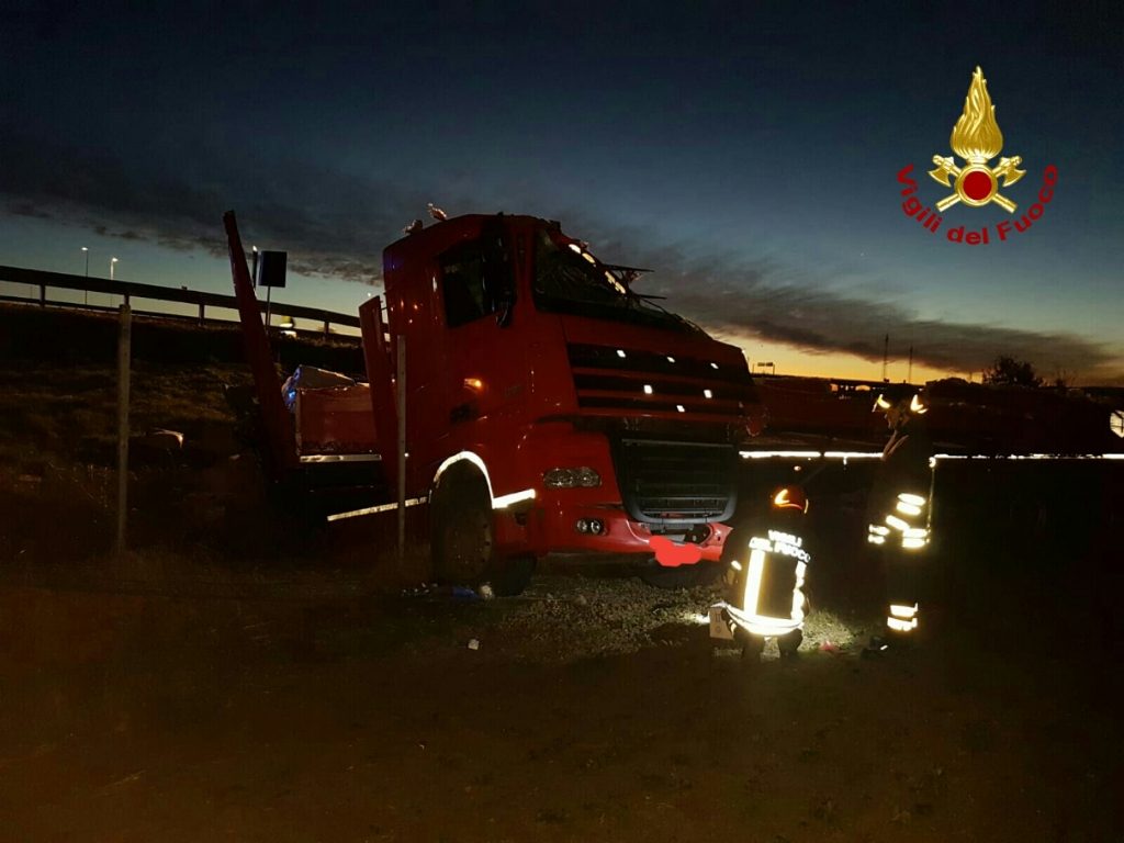 Tir del corriere merci si ribalta sul raccordo Fi-Pi-Li