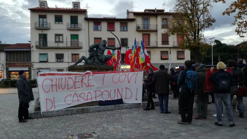 Numerosi i cori antirazzisti e antifascisti, con un eloquente striscione che invita CasaPound a non presentarsi a Firenze.