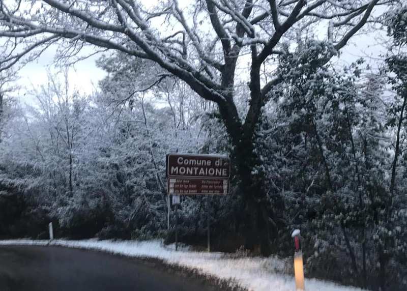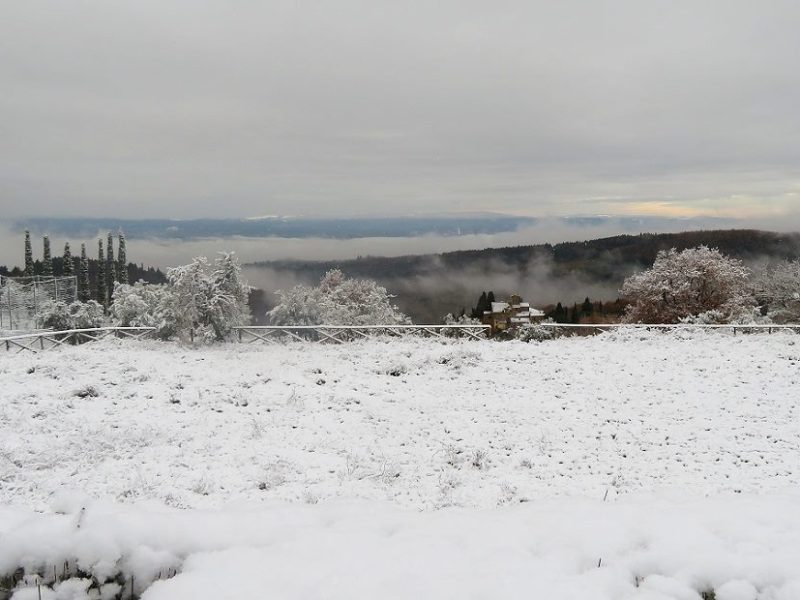 La promessa era stata fatta e stamattina è stata mantenuta: la neve ha cominciato a cadere questa notte in Toscana e tra le zone imbiancate ci sono pure Gambassi Terme e Montaione, tra i comuni con l'altitudine maggiore degli 11 dell'Empolese Valdelsa. Il bianco manto ha toccato anche il Monte Serra nel comune di Calci (Pisa), la città di Volterra e le Apuane. A causa della nevicata le scuole di Chianciano Terme, in seguito ad ordinanza del sindaco sono rimaste chiuse