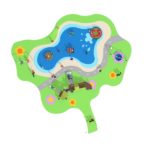 Lo spazio in cui saranno ubicati i nuovi giochini vede già la presenza di altre attrezzature ed è adiacente al laghetto, circondata dalla vegetazione.