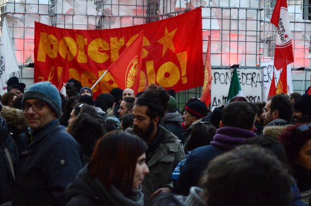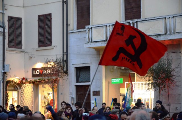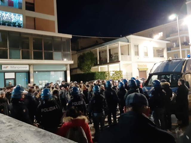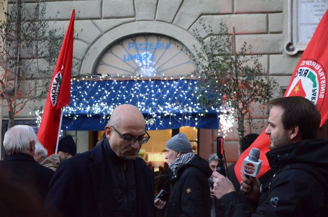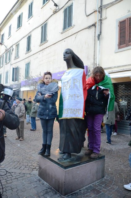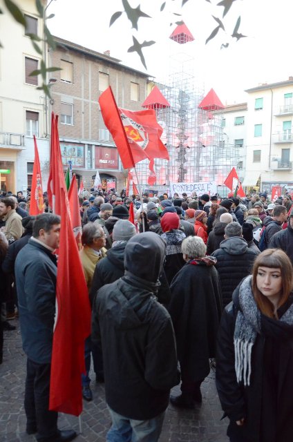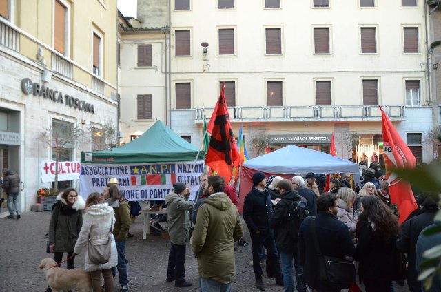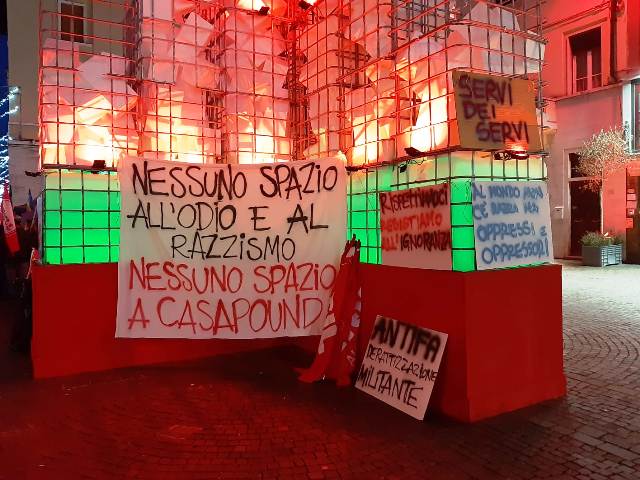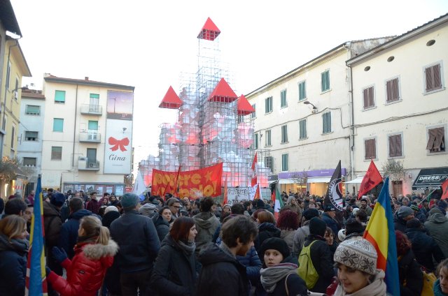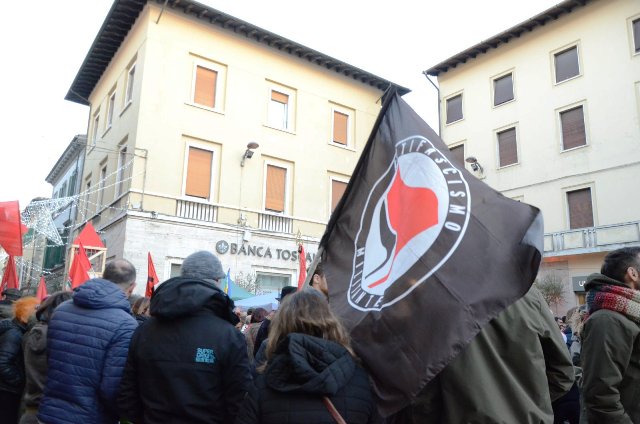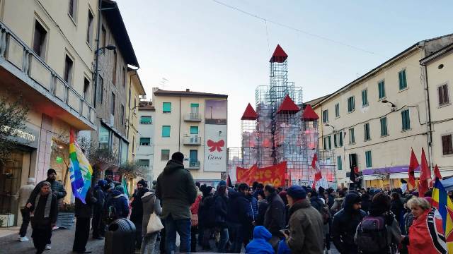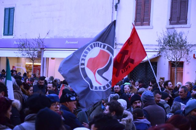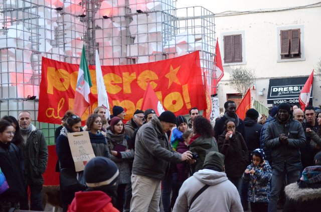 Pontedera asserragliata per l'inaugurazione in via Manzoni della sede di CasaPound. Le associazioni, i partiti e i singoli che hanno voluto opporsi si sono presentati di fronte al municipio, a poche centinaia di metri.